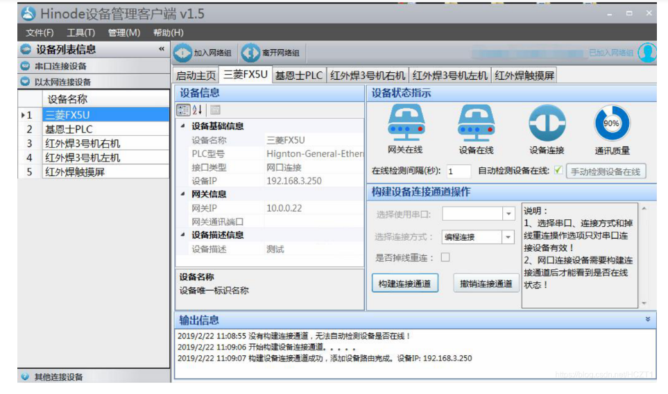 客户端正常上线,网关及设备图标上线,指示灯亮,如图,最小化窗口即可(不能关闭客户端)。
