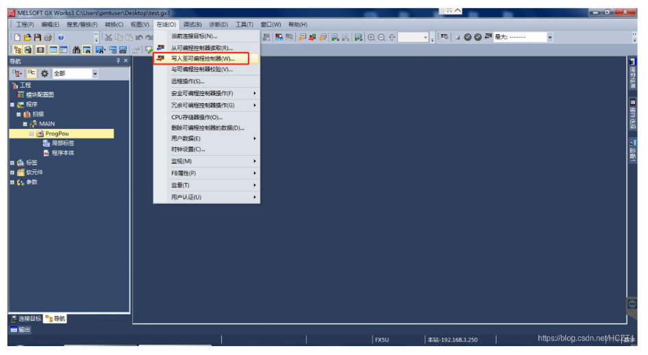 点击【在线】下的【写入至可编程控制器】。