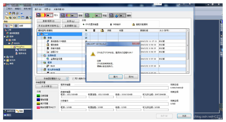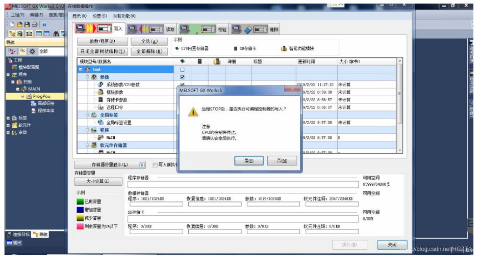 提示是否执行可编程控制器的写入,点击【是】。